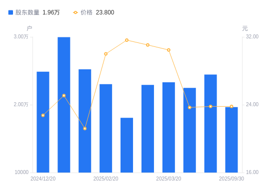 近一年(2024年9月30日至2025年9月30日),申昊科技A股股东户数从1.41万户,增加至1.96万户,增幅39.83%,区间股价上涨73.85%。