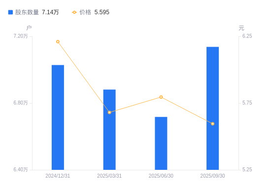 近一年(2024年9月30日至2025年9月30日),沙钢股份A股股东户数从7.99万户,减低至7.14万户,降幅10.73%,区间股价上涨4.29%。