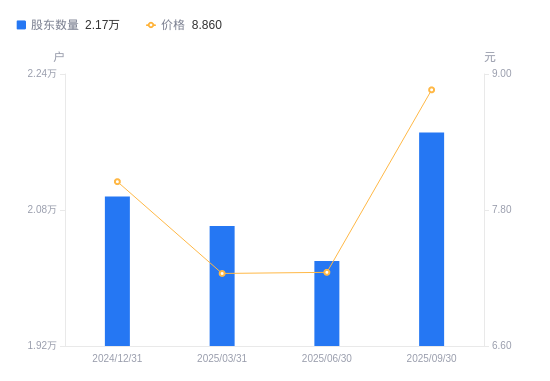 近一年(2024年9月30日至2025年9月30日),天域生物A股股东户数从1.48万户,增加至2.17万户,增幅46.49%,区间股价上涨61.09%。
