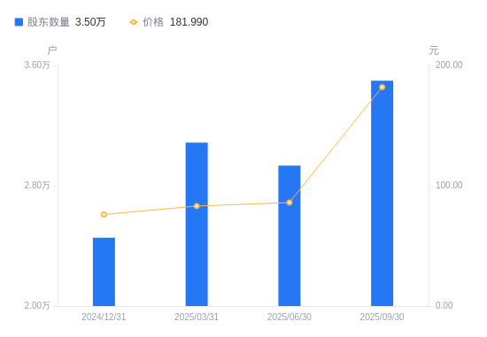 近一年(2024年9月30日至2025年9月30日),协创数据A股股东户数从2.52万户,增加至3.5万户,增幅38.61%,区间股价上涨343.98%。