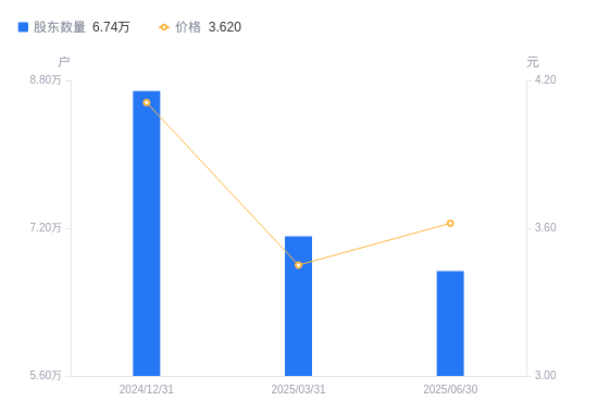 10月29日消息,数据显示,截至2025年9月30日,中央商场A股股东总户数为6.07万户,较上期(2025年6月30日)减少6629户,降幅9.84%。公司最新A股总股本为11.28亿股,其中流通A股11.28亿股,户均持有流通A股数量为1.86万股,较上期增加1828.24股,增幅10.91%;户均持流通A股市值6.24万元,较上期增加1787.86元,增幅2.95%。
