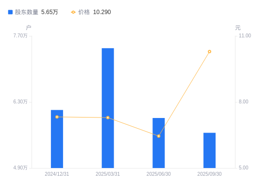 近一年(2024年9月30日至2025年9月30日),深振业AA股股东户数从6.86万户,减低至5.65万户,降幅17.65%,区间股价上涨100.58%。