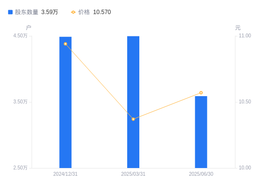 10月29日消息,数据显示,截至2025年9月30日,凤凰传媒A股股东总户数为4.29万户,较上期(2025年6月30日)增加6975户,增幅19.44%。公司最新A股总股本为25.45亿股,其中流通A股25.45亿股,户均持有流通A股数量为5.94万股,较上期减少1.15万股,降幅16.28%;户均持流通A股市值61.88万元,较上期减少13.09万元,降幅17.46%。