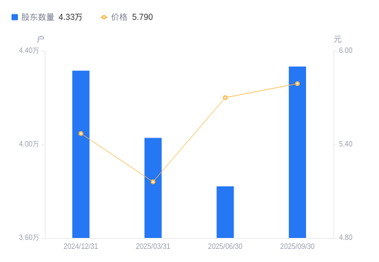 近一年(2024年9月30日至2025年9月30日),瑞丰光电A股股东户数从4.26万户,增加至4.33万户,增幅1.67%,区间股价上涨32.80%。