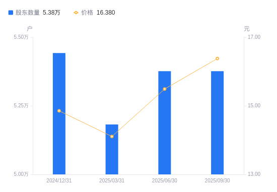 近一年(2024年9月30日至2025年9月30日),通宇通讯A股股东户数从5.27万户,增加至5.38万户,增幅1.96%,区间股价上涨40.18%。