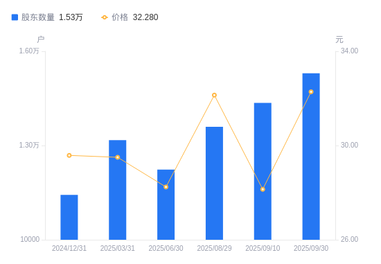 近一年(2024年9月30日至2025年8月29日),安路科技A股股东户数从1.04万户,增加至1.36万户,增幅30.18%,区间股价上涨51.53%。