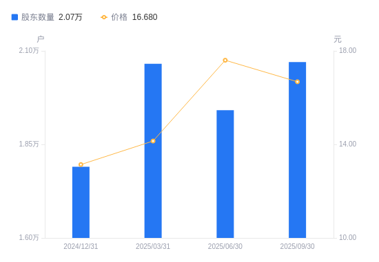近一年(2024年9月30日至2025年9月30日),常青科技A股股东户数从2.05万户,增加至2.07万户,增幅1.18%,区间股价上涨44.92%。