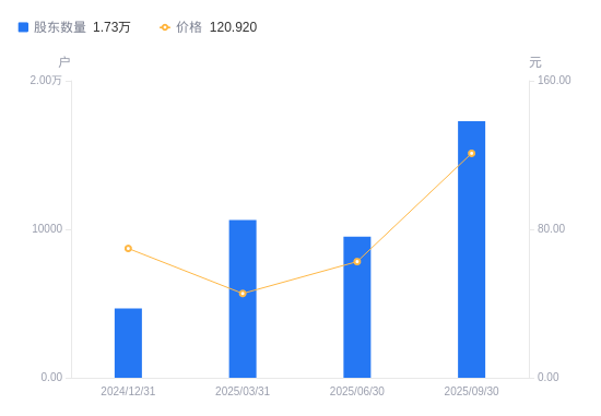近一年(2024年9月30日至2025年9月30日),德科立A股股东户数从6283户,增加至1.73万户,增幅174.93%,区间股价上涨345.44%。