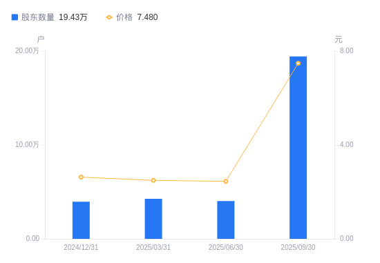 近一年(2024年9月30日至2025年9月30日),首开股份A股股东户数从4.66万户,增加至19.43万户,增幅317.23%,区间股价上涨148.50%。