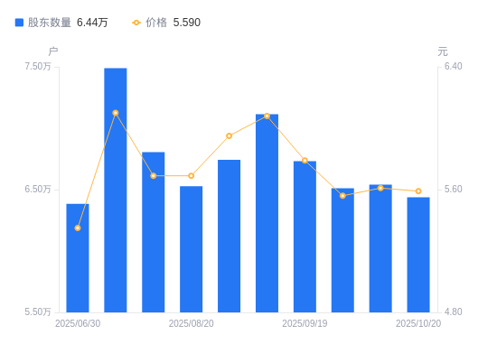 近一年(2024年10月31日至2025年10月20日),红旗连锁A股股东户数从4.69万户,增加至6.44万户,增幅37.26%,区间股价上涨12.82%。