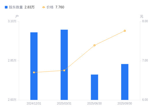 10月30日消息,数据显示,截至2025年9月30日,莎普爱思A股股东总户数为2.83万户,较上期(2025年6月30日)增加670户,增幅2.43%。公司最新A股总股本为3.76亿股,其中流通A股3.23亿股,户均持有流通A股数量为1.14万股,较上期减少276.71股,降幅2.37%;户均持流通A股市值8.85万元,较上期增加2174.98元,增幅2.52%。