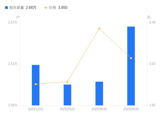 近一年(2024年9月30日至2025年9月30日),曲美家居A股股东户数从2.66万户,增加至2.66万户,增幅0.15%,区间股价上涨47.51%。