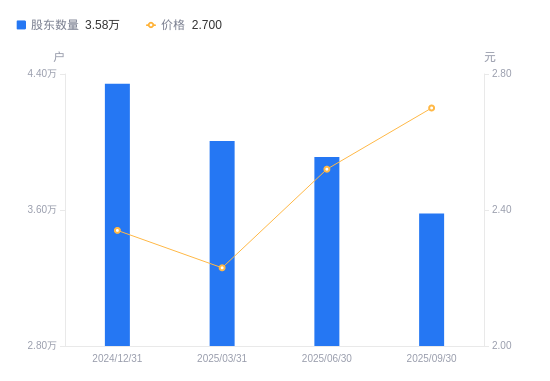 近一年(2024年9月30日至2025年9月30日),栖霞建设A股股东户数从3.93万户,减低至3.58万户,降幅9.03%,区间股价上涨18.94%。