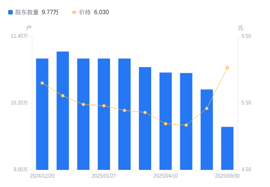 近一年(2024年9月30日至2025年9月30日),仁和药业A股股东户数从10.26万户,减低至9.77万户,降幅4.76%,区间股价上涨4.87%。