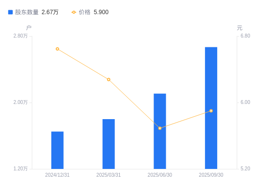 近一年(2024年9月30日至2025年9月30日),岱美股份A股股东户数从1.09万户,增加至2.67万户,增幅145.45%,区间股价下跌20.68%。
