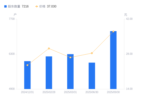 10月30日消息,数据显示,截至2025年9月30日,中润光学A股股东总户数为7216户,较上期(2025年6月30日)增加1260户,增幅21.16%。公司最新A股总股本为8877.4万股,其中流通A股5892.33万股,户均持有流通A股数量为8165.65股,较上期减少1597.5股,降幅16.36%;户均持流通A股市值30.24万元,较上期增加2.57万元,增幅9.28%。