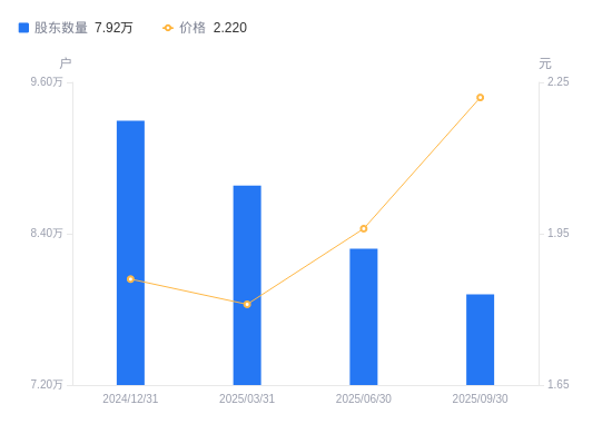 近一年(2024年9月30日至2025年9月30日),安阳钢铁A股股东户数从8.79万户,减低至7.92万户,降幅9.92%,区间股价上涨33.73%。