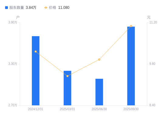 近一年(2024年9月30日至2025年9月30日),上海物贸A股股东户数从3.3万户,增加至3.84万户,增幅16.37%,区间股价上涨29.14%。