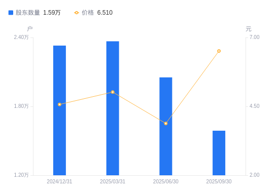 10月30日消息,数据显示,截至2025年9月30日,ST尔雅(维权)A股股东总户数为1.59万户,较上期(2025年6月30日)减少4644户,降幅22.63%。公司最新A股总股本为3.6亿股,其中流通A股3.6亿股,户均持有流通A股数量为2.27万股,较上期增加5129.58股,增幅29.24%;户均持流通A股市值14.76万元,较上期增加7.95万元,增幅116.85%。