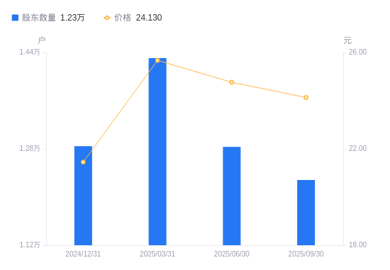 近一年(2024年9月30日至2025年9月30日),牧高笛A股股东户数从1.26万户,减低至1.23万户,降幅2.54%,区间股价上涨21.20%。