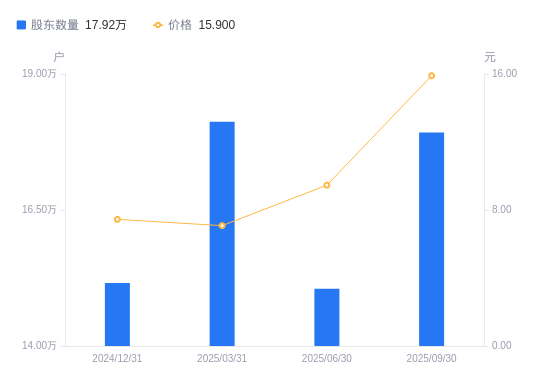 近一年(2024年9月30日至2025年9月30日),杉杉股份A股股东户数从15.57万户,增加至17.92万户,增幅15.10%,区间股价上涨85.96%。