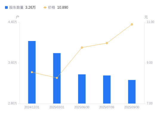 近一年(2024年9月30日至2025年9月30日),司太立A股股东户数从3.2万户,增加至3.26万户,增幅1.95%,区间股价上涨25.90%。