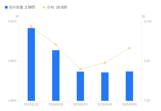 近一年(2024年9月30日至2025年9月30日),惠发食品A股股东户数从2.59万户,增加至2.59万户,增幅0.08%,区间股价上涨13.41%。