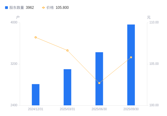 近一年(2024年9月30日至2025年9月30日),佰仁医疗A股股东户数从2457户,增加至3962户,增幅61.25%,区间股价上涨2.79%。