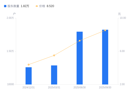 近一年(2024年9月30日至2025年9月30日),精进电动A股股东户数从1.24万户,增加至1.82万户,增幅46.95%,区间股价上涨107.30%。