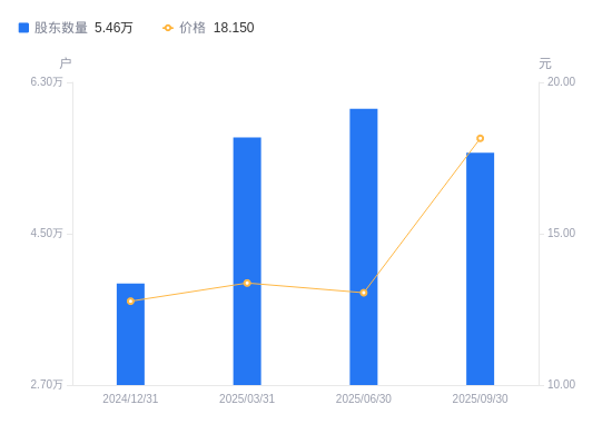 10月30日消息,数据显示,截至2025年9月30日,旭升集团A股股东总户数为5.46万户,较上期(2025年6月30日)减少5214户,降幅8.71%。公司最新A股总股本为9.79亿股,其中流通A股9.79亿股,户均持有流通A股数量为1.79万股,较上期增加1982.52股,增幅12.45%;户均持流通A股市值32.51万元,较上期增加11.72万元,增幅56.39%。