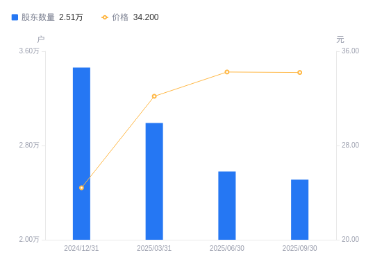 10月30日消息,数据显示,截至2025年9月30日,亿嘉和(维权)A股股东总户数为2.51万户,较上期(2025年6月30日)减少692户,降幅2.68%。公司最新A股总股本为2.06亿股,其中流通A股2.06亿股,户均持有流通A股数量为8186.18股,较上期增加182.35股,增幅2.28%;户均持流通A股市值28万元,较上期增加5916.21元,增幅2.16%。