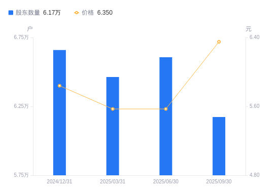 近一年(2024年9月30日至2025年9月30日),铁龙物流A股股东户数从6.85万户,减低至6.17万户,降幅9.84%,区间股价上涨10.82%。