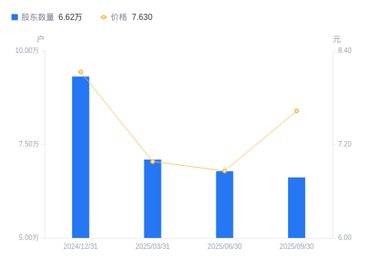 近一年(2024年9月30日至2025年9月30日),华西股份A股股东户数从8.27万户,减低至6.62万户,降幅19.99%,区间股价上涨25.91%。