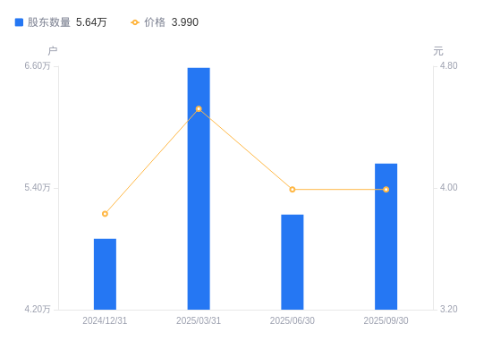 近一年(2024年9月30日至2025年9月30日),林州重机A股股东户数从5.43万户,增加至5.64万户,增幅3.79%,区间股价上涨14.33%。