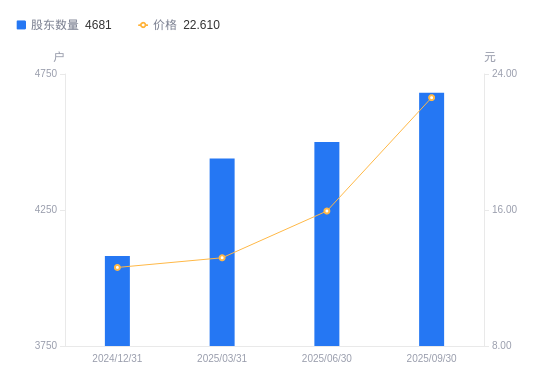 近一年(2024年9月30日至2025年9月30日),富淼科技A股股东户数从4603户,增加至4681户,增幅1.69%,区间股价上涨106.11%。