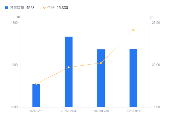 近一年(2024年9月30日至2025年9月30日),爱科科技A股股东户数从4179户,增加至4553户,增幅8.95%,区间股价上涨30.62%。
