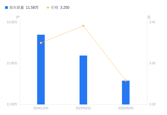 近一年(2024年9月30日至2025年9月30日),国中水务A股股东户数从12.04万户,减低至10.97万户,降幅8.86%,区间股价下跌13.54%。