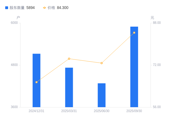 近一年(2024年9月30日至2025年9月30日),宏华数科A股股东户数从3752户,增加至5894户,增幅57.09%,区间股价上涨27.63%。