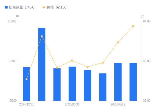 近一年(2024年9月30日至2025年9月30日),冠石科技A股股东户数从1.53万户,减低至1.45万户,降幅4.80%,区间股价上涨62.06%。