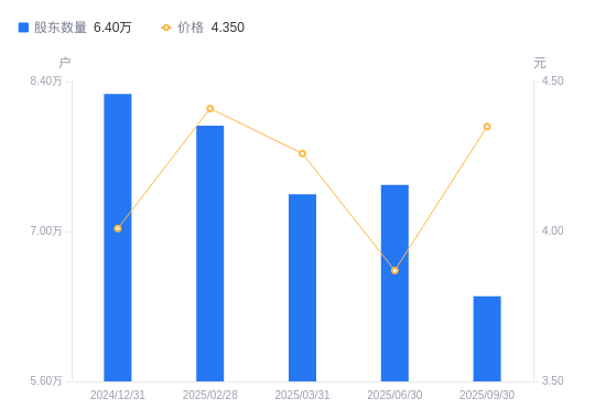 近一年(2024年9月30日至2025年9月30日),新乡化纤A股股东户数从6.08万户,增加至6.4万户,增幅5.16%,区间股价上涨24.25%。