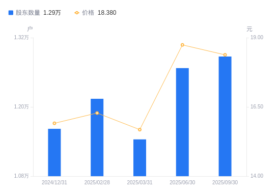 近一年(2024年9月30日至2025年9月30日),航天软件A股股东户数从1.19万户,增加至1.29万户,增幅7.78%,区间股价上涨28.53%。