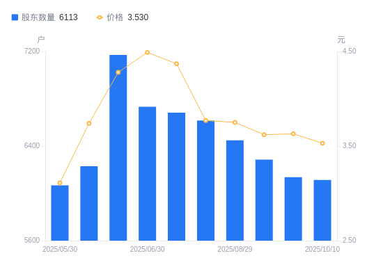 近一年(2024年9月30日至2025年9月30日),ST雪发A股股东户数从6048户,增加至6137户,增幅1.47%,区间股价上涨25.17%。