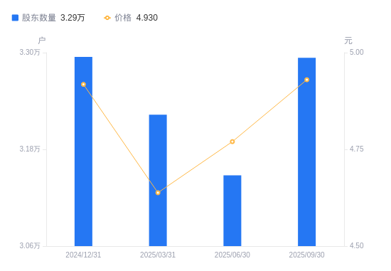 近一年(2024年9月30日至2025年9月30日),宝钢包装A股股东户数从3.27万户,增加至3.29万户,增幅0.81%,区间股价下跌0.96%。