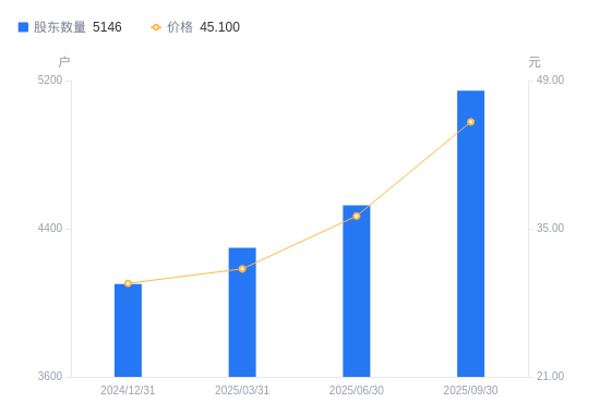 近一年(2024年9月30日至2025年9月30日),首药控股A股股东户数从3635户,增加至5146户,增幅41.57%,区间股价上涨32.22%。