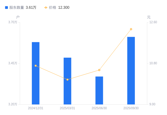 近一年(2024年9月30日至2025年9月30日),沧州大化A股股东户数从3.9万户,减低至3.61万户,降幅7.37%,区间股价上涨18.17%。
