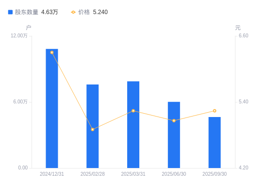 近一年(2024年9月30日至2025年9月30日),宝胜股份A股股东户数从4.38万户,增加至4.63万户,增幅5.73%,区间股价上涨40.11%。