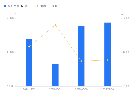 10月30日消息,数据显示,截至2025年9月30日,今世缘A股股东总户数为6.63万户,较上期(2025年6月30日)增加3210户,增幅5.09%。公司最新A股总股本为12.47亿股,其中流通A股12.47亿股,户均持有流通A股数量为1.88万股,较上期减少956.13股,降幅4.84%;户均持流通A股市值73.88万元,较上期减少3.03万元,降幅3.94%。