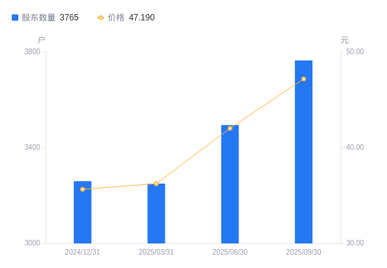 10月30日消息,数据显示,截至2025年9月30日,仁度生物A股股东总户数为3765户,较上期(2025年6月30日)增加270户,增幅7.73%。公司最新A股总股本为4006.99万股,其中流通A股4006.99万股,户均持有流通A股数量为1.06万股,较上期增加1610.28股,增幅17.83%;户均持流通A股市值50.22万元,较上期增加12.26万元,增幅32.29%。
