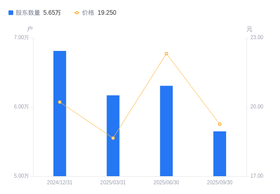 近一年(2024年9月30日至2025年9月30日),掌阅科技A股股东户数从6.39万户,减低至5.65万户,降幅11.69%,区间股价上涨6.83%。