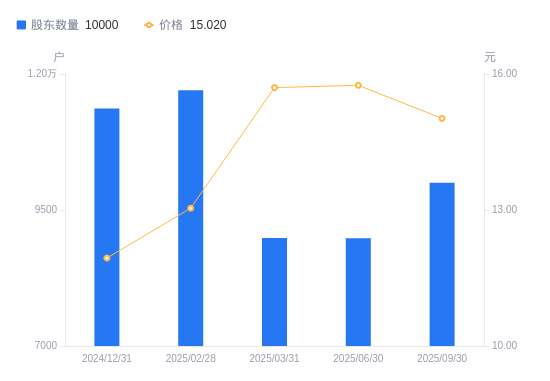 近一年(2024年9月30日至2025年9月30日),长鸿高科A股股东户数从8864户,增加至1万户,增幅12.82%,区间股价上涨21.42%。